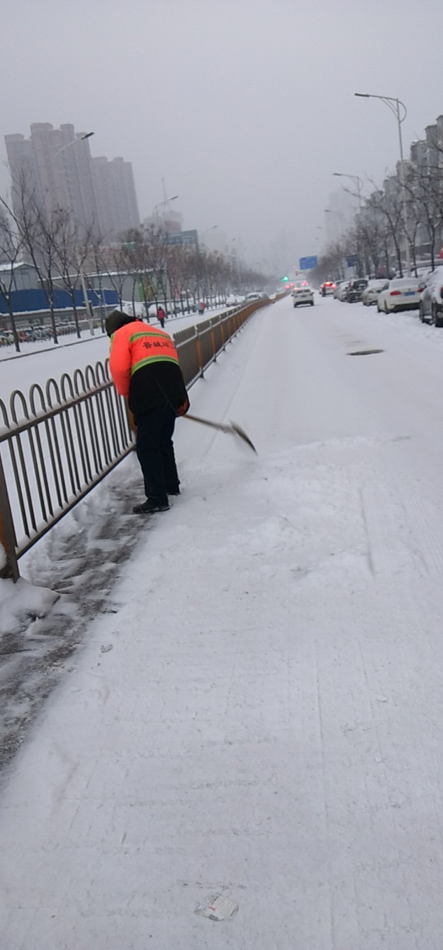 新年的第一場(chǎng)大雪,到處銀裝素裹,扮美了整個(gè)晉城,但大雪帶來(lái)美景的同時(shí),也給大家的出行帶來(lái)了不便。為保障大雪期間出行安全,潔霸公司各保潔點(diǎn)的負(fù)責(zé)人積極組織員工進(jìn)行主干道積雪清掃,在除雪過(guò)程中,雖然天氣寒冷,但大家除雪的熱情卻不減,大家有的撒融雪劑,有的 清掃積雪,有的用鏟子除冰,奏響鏟雪破冰進(jìn)行曲。