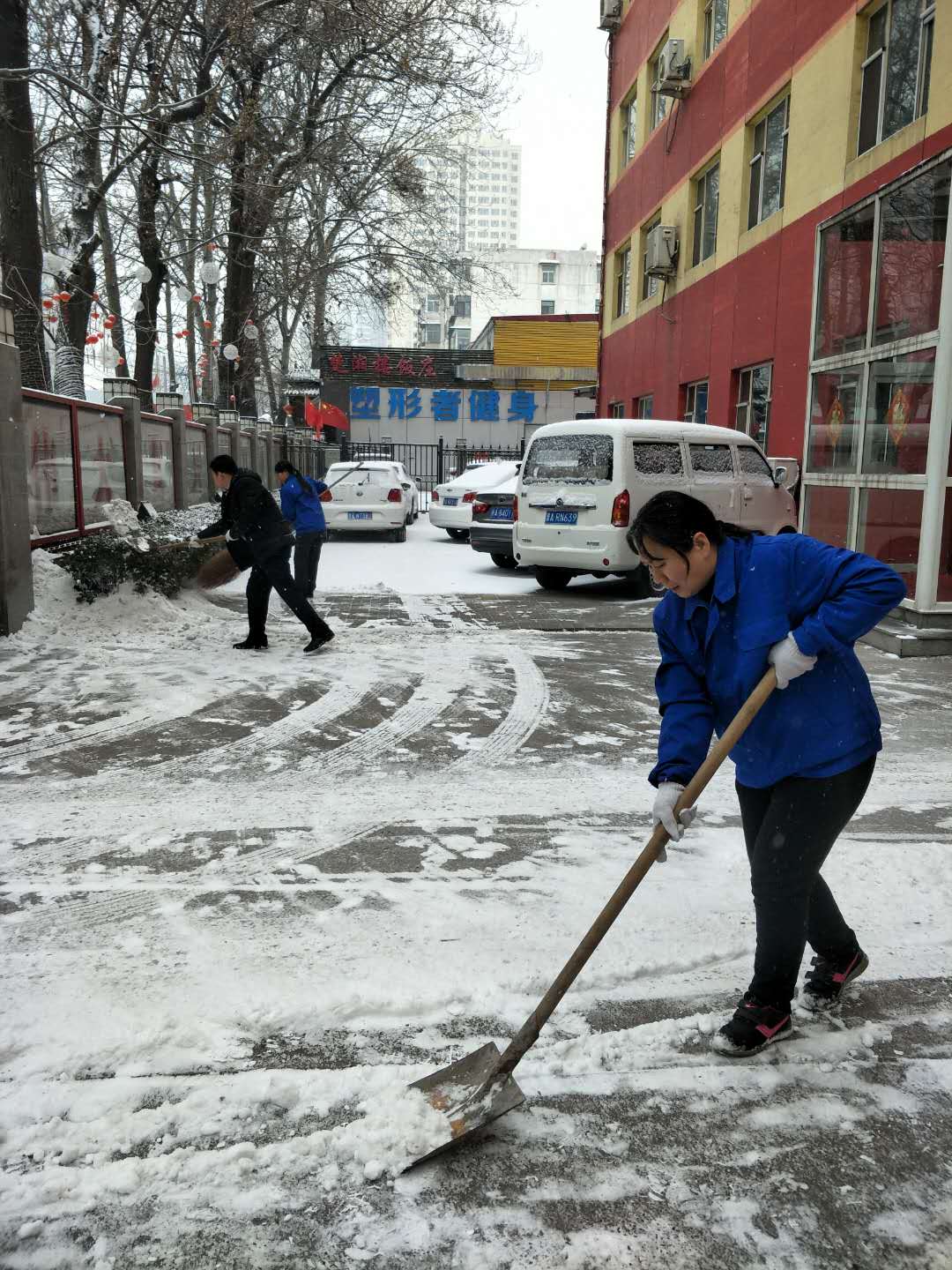 為保障大家出行安全,認(rèn)真鏟除地面殘冰。