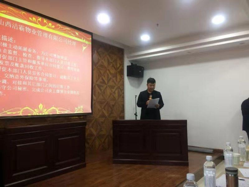 12月20日下午,晉城市潔霸清潔服務(wù)股份有限公司開展中層管理人員競聘演講活動(dòng),公開競聘選拔物業(yè)管理公司經(jīng)理,運(yùn)營中心經(jīng)理,清潔用品超市店長3個(gè)職位的中層管理人員。公司領(lǐng)導(dǎo)班子成員和部分管理人員出席活動(dòng)。
