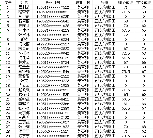 晉城市潔霸清潔服務股份有限公司職業(yè)技能等級認定中心現(xiàn)將2024年9月21日認定人員成績公示如下: