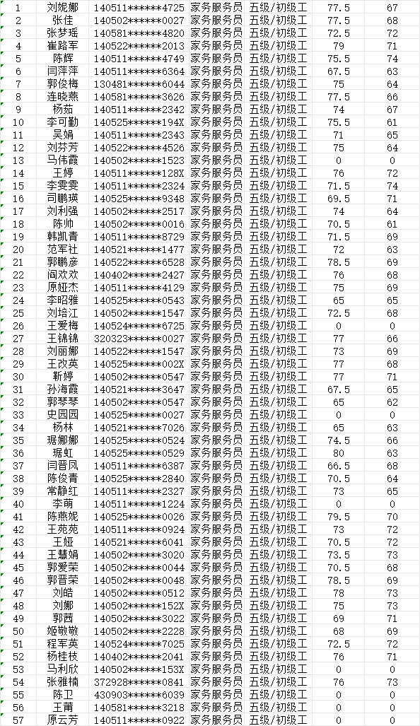 晉城市潔霸清潔服務(wù)股份有限公司職業(yè)技能等級(jí)認(rèn)定中心現(xiàn)將2024年9月21日認(rèn)定人員成績公示如下: