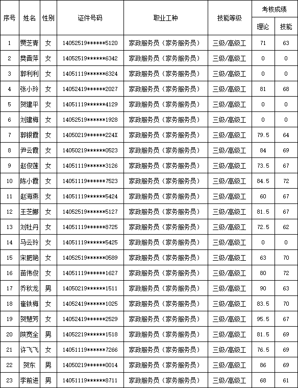 山西潔霸清潔服務集團股份有限公司職業(yè)技能等級認定中心現(xiàn)在將2025年8月30日認定人員成績公示如下: