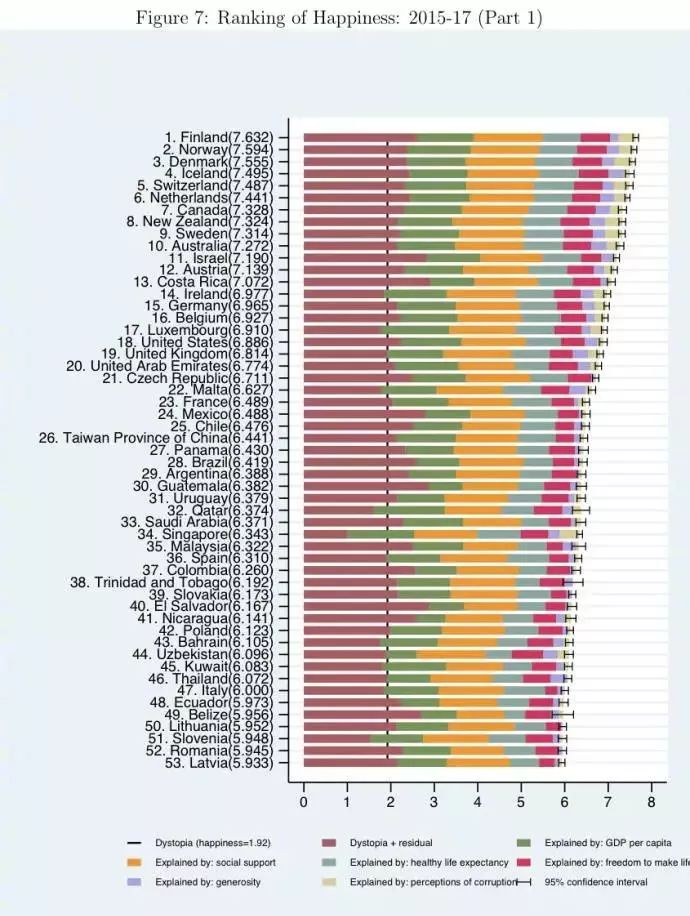 聯合國發(fā)布全球幸福指數排名,利比亞比中國更“幸!。在今年的國際幸福日到來之際,聯合國連續(xù)第六年發(fā)布《世界幸福報告》,對2015至2017年間全球156個國家和地區(qū)人民的主觀幸福感水平以及117個國家和地區(qū)移民的幸福感水平進行了綜合排名。中國大陸今年排86位,比去年(79)略有下滑。令人意外的是,利比亞以排名70的名次躍居中國之前。